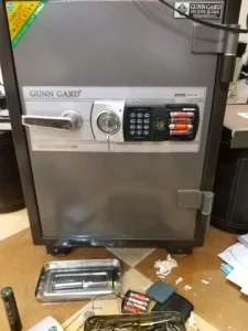 Két sắt bị va đập hoặc cạy phá: Ảnh hưởng đến chức năng bảo vệ của két.
